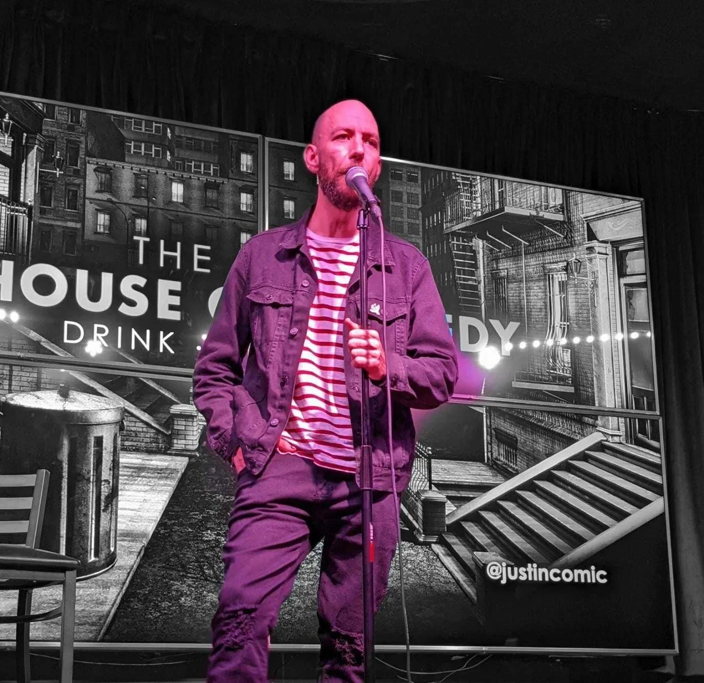 “Justin has the audience eating out of the palm of his hand the entire show. Drawing material mostly from past and current life experiences, sobriety, dating, and his crazy family, Justin always makes the audience feel comfortable with his unique style of comedy.” -Sub.Urban Comedy